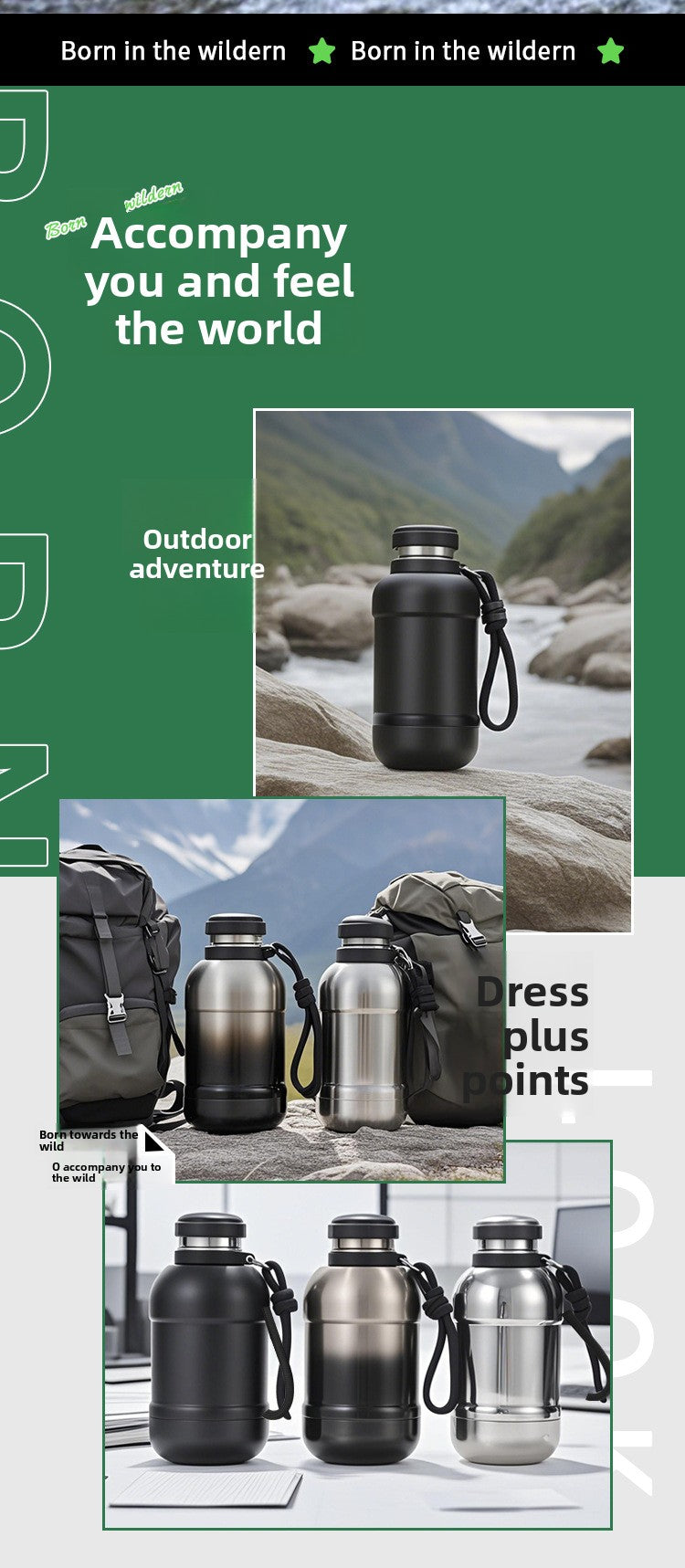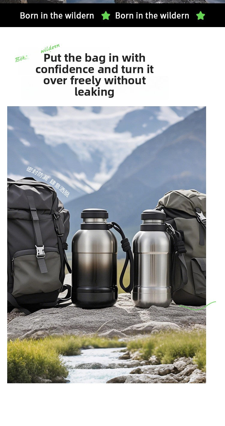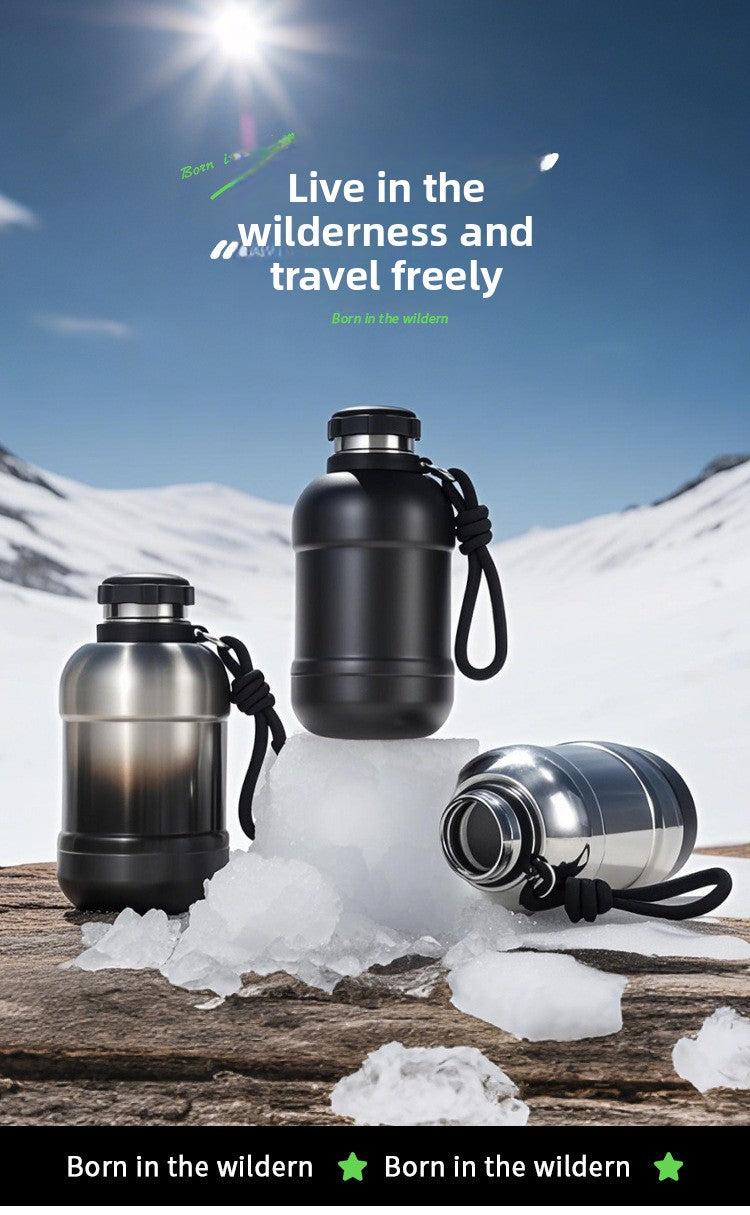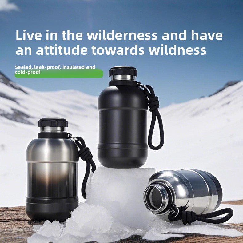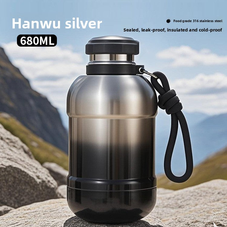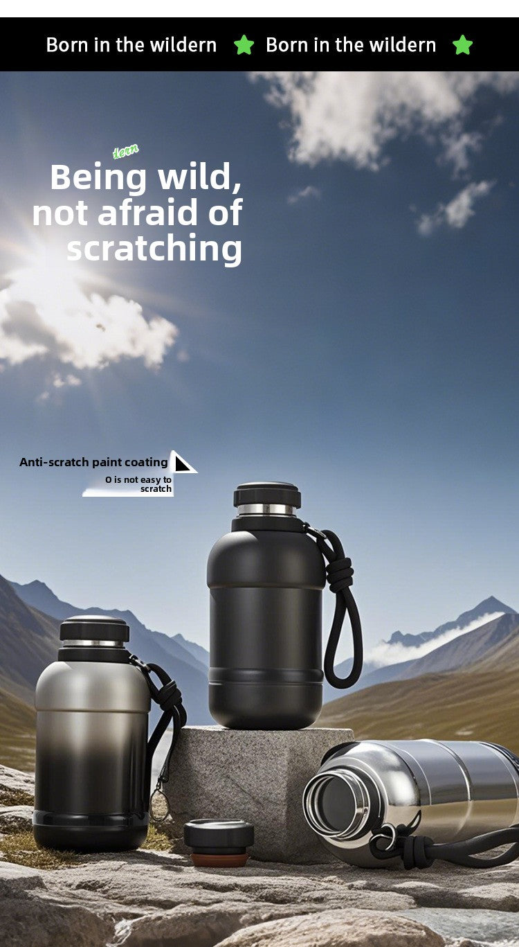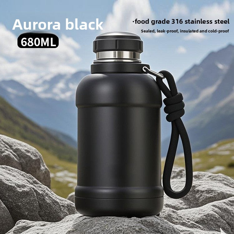 Large Capacity Thermos Cup for Men, Outdoor Hiking Sports Thermos Bottle, 316 Stainless Steel Custom Water Cup, Portable New Sports Water Bottle, Ton Ton Bucket, Portable Handle, Large Water Bottle, Sports Water Bottle, Cross-Border Stainless Steel Space Bottle, Double-Layer Vacuum Outdoor Large Capacity Portable Handle Thermos Cup