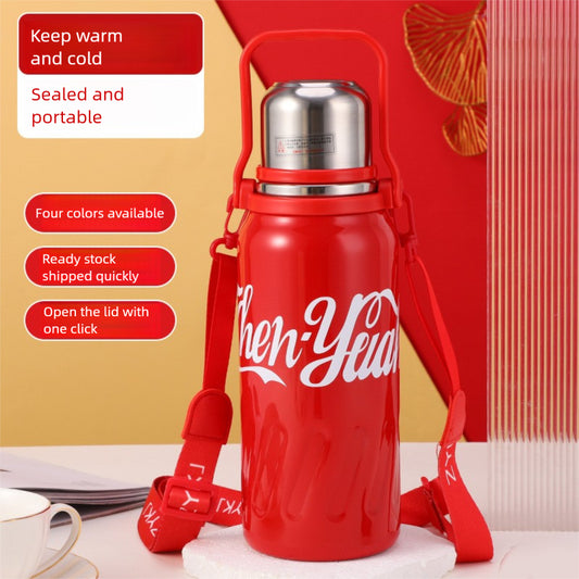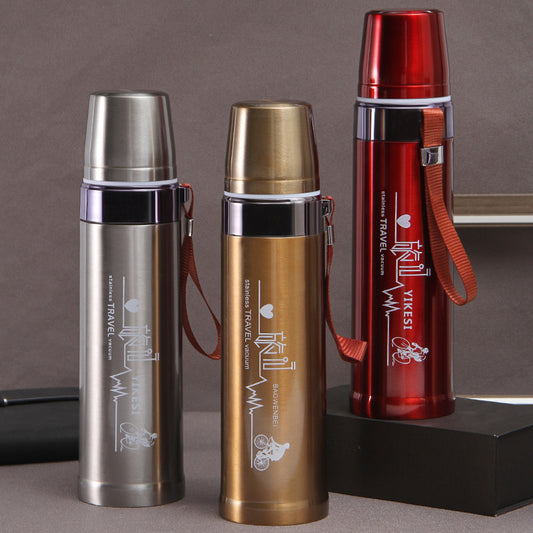 Large Capacity 316 Stainless Steel Insulated Cup Outdoor Portable Strap Water Bottle
