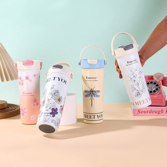 Portable 304 Stainless Steel Sports Wide Mouth Insulated Cup Outdoor Handheld Water Bottle