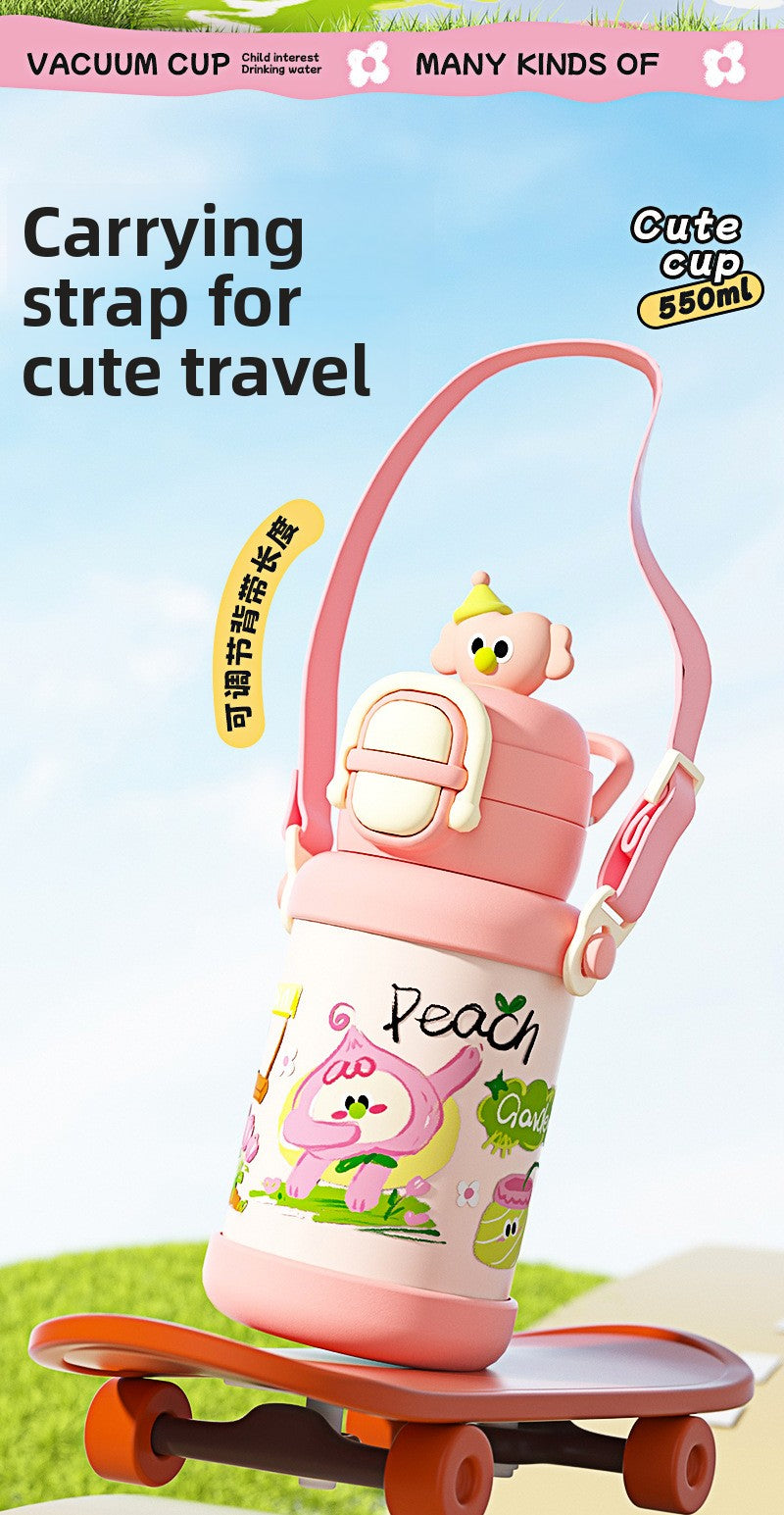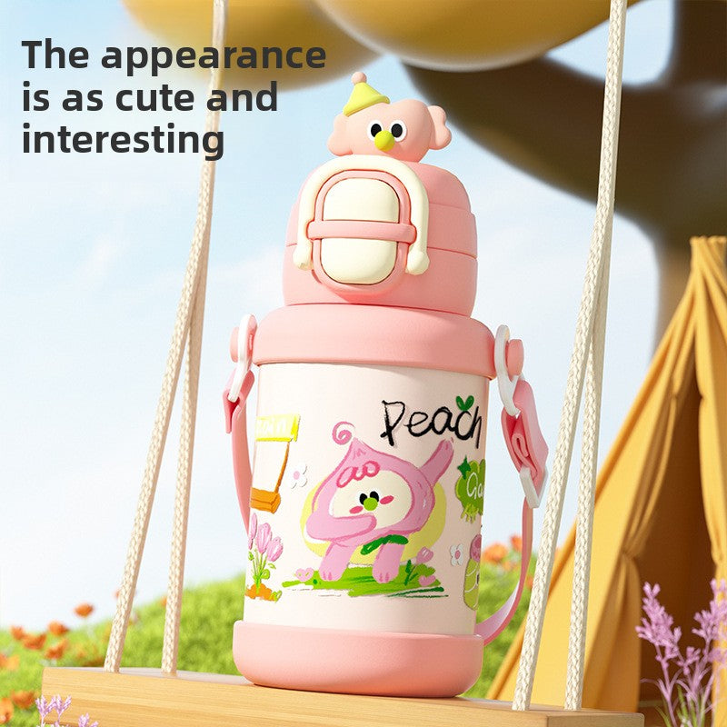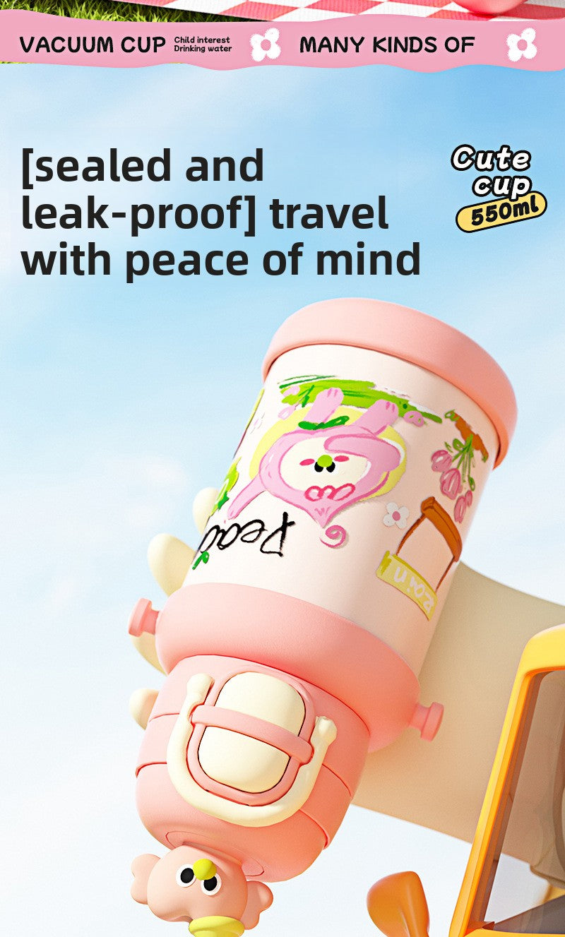 Backpack Water BottleChildren's Smart Insulated Cup 304 Stainless Steel Cartoon Water Bottle Portable Straw Cup High Appearance Children