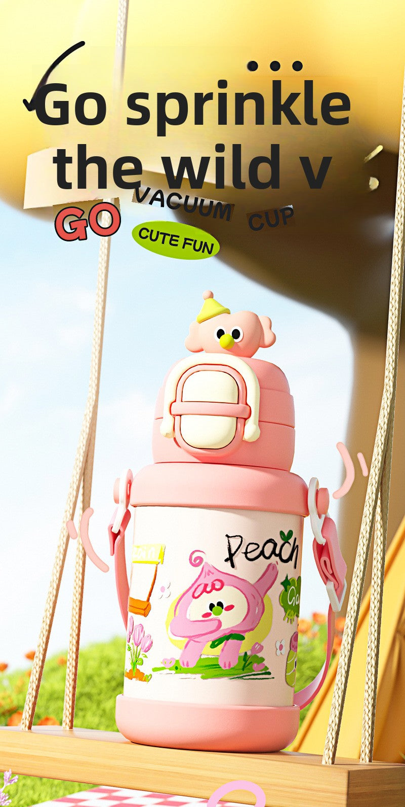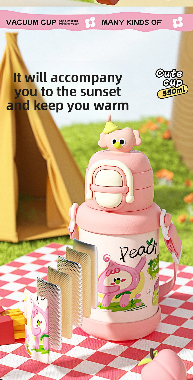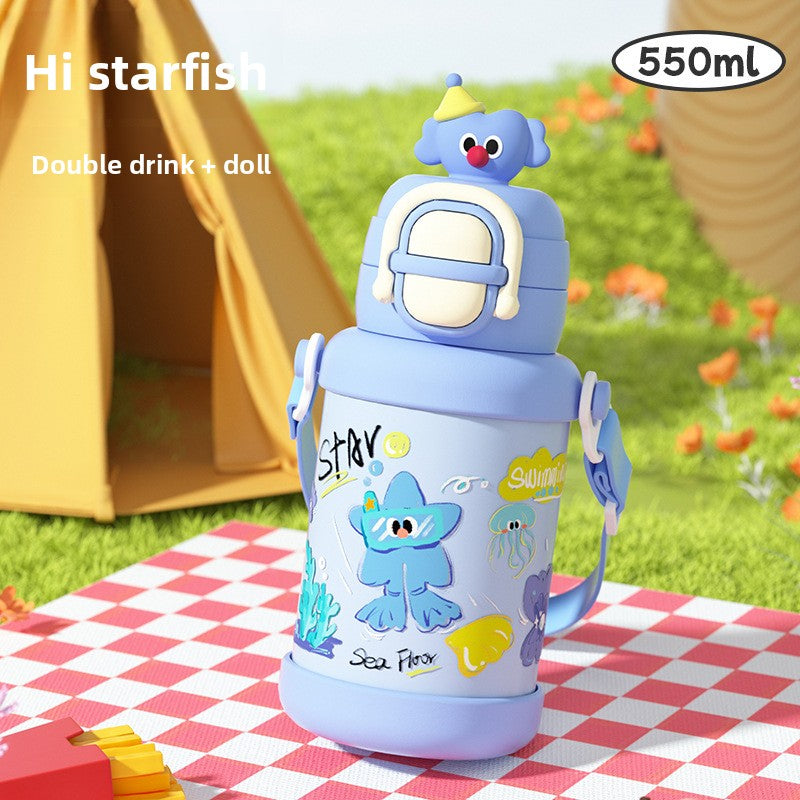 Cartoon New Style Doll Children's Insulated Cup with Dual Drinking Lid Stainless Steel Water Bottle for Boys and Girls Students