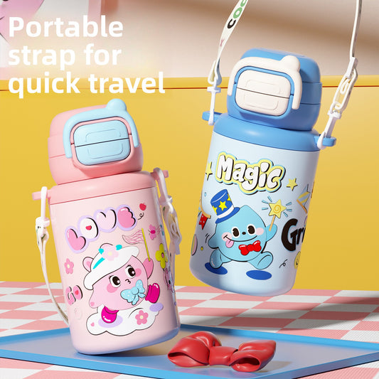 Cartoon Children's 316L Stainless Steel Insulated Tumbler Outdoor Strap Straw Cup