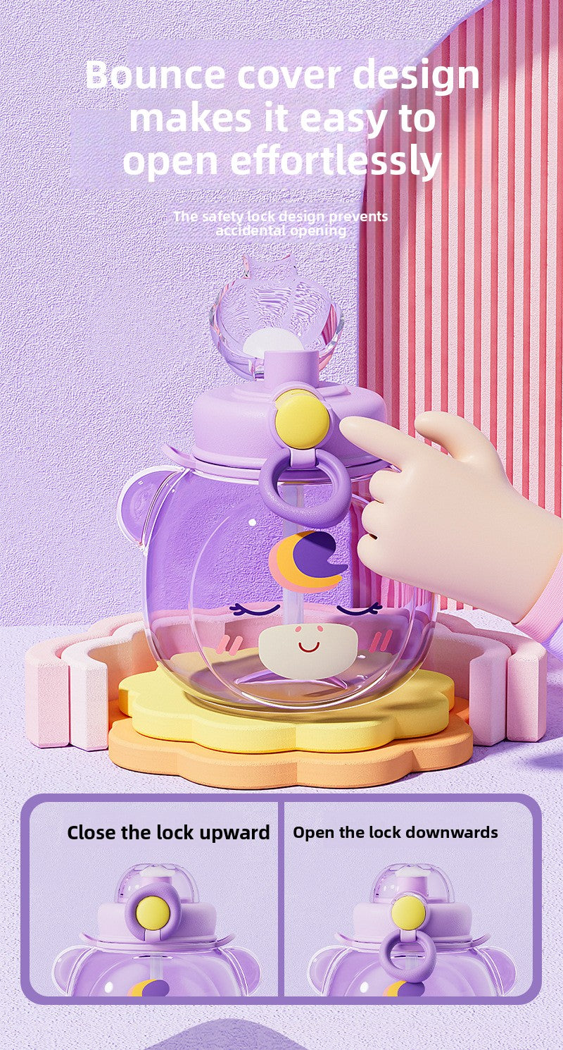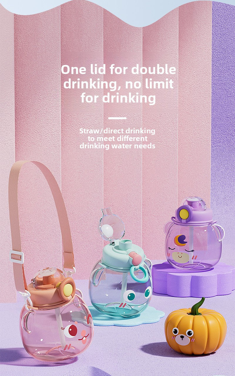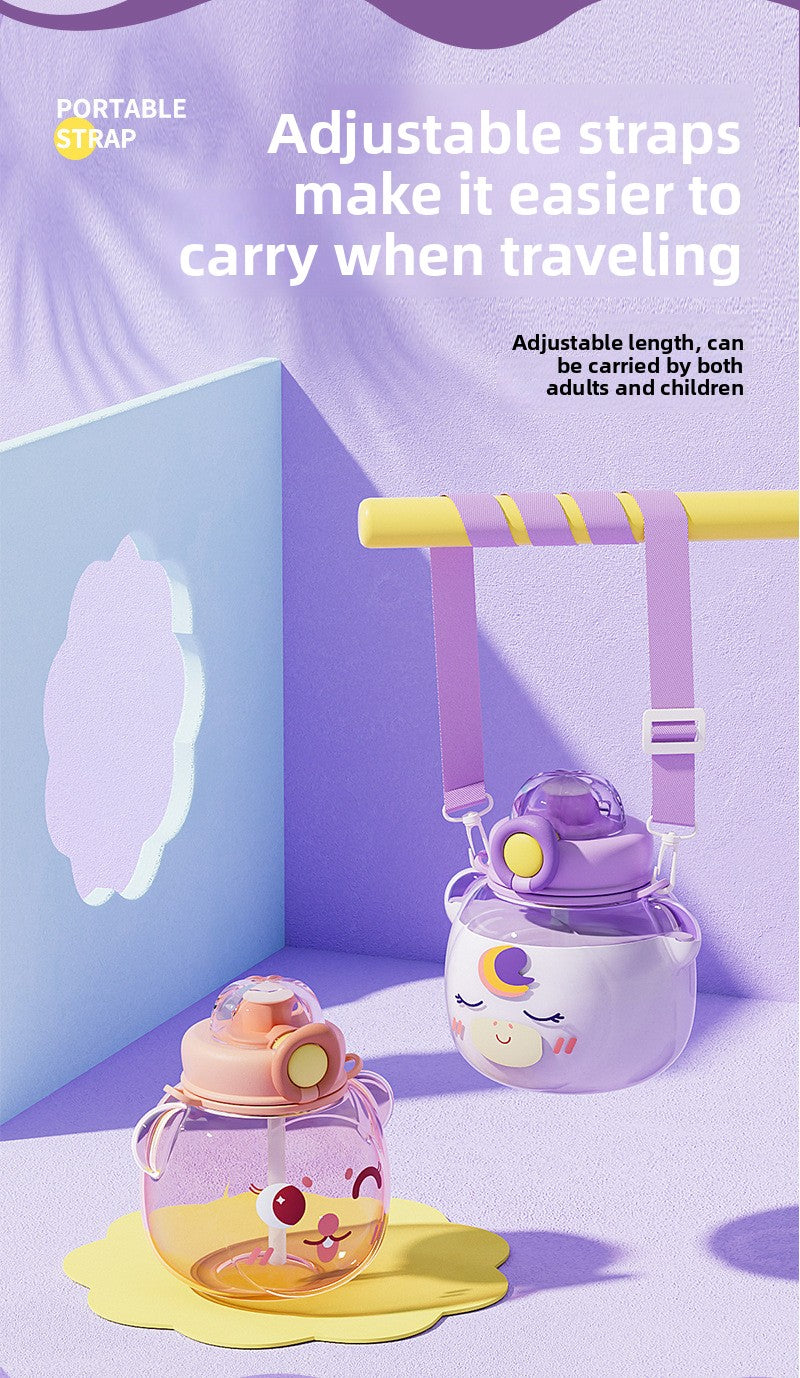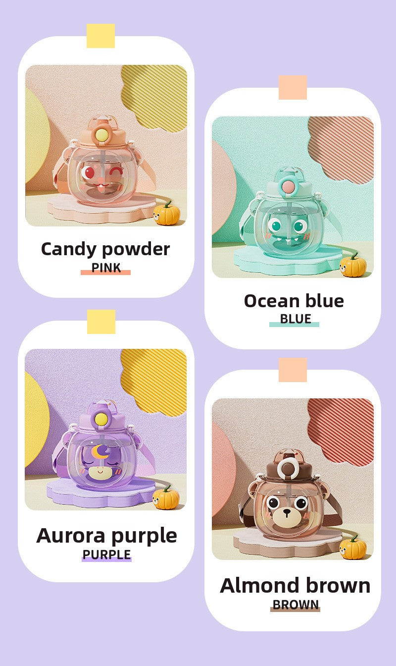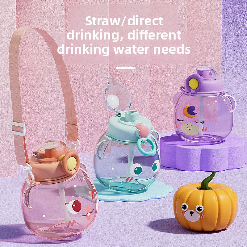 Make hydration fun and fuss-free!This adorable plastic water bottle features a Detachable shoulder strap for easy carrying and a one-touch open straw lid for chuitsk, mes-free shipping.Made with durable, BPA-free materials, it’s safe for kids and perfect for school, outings, or daily adventures.