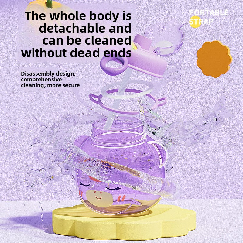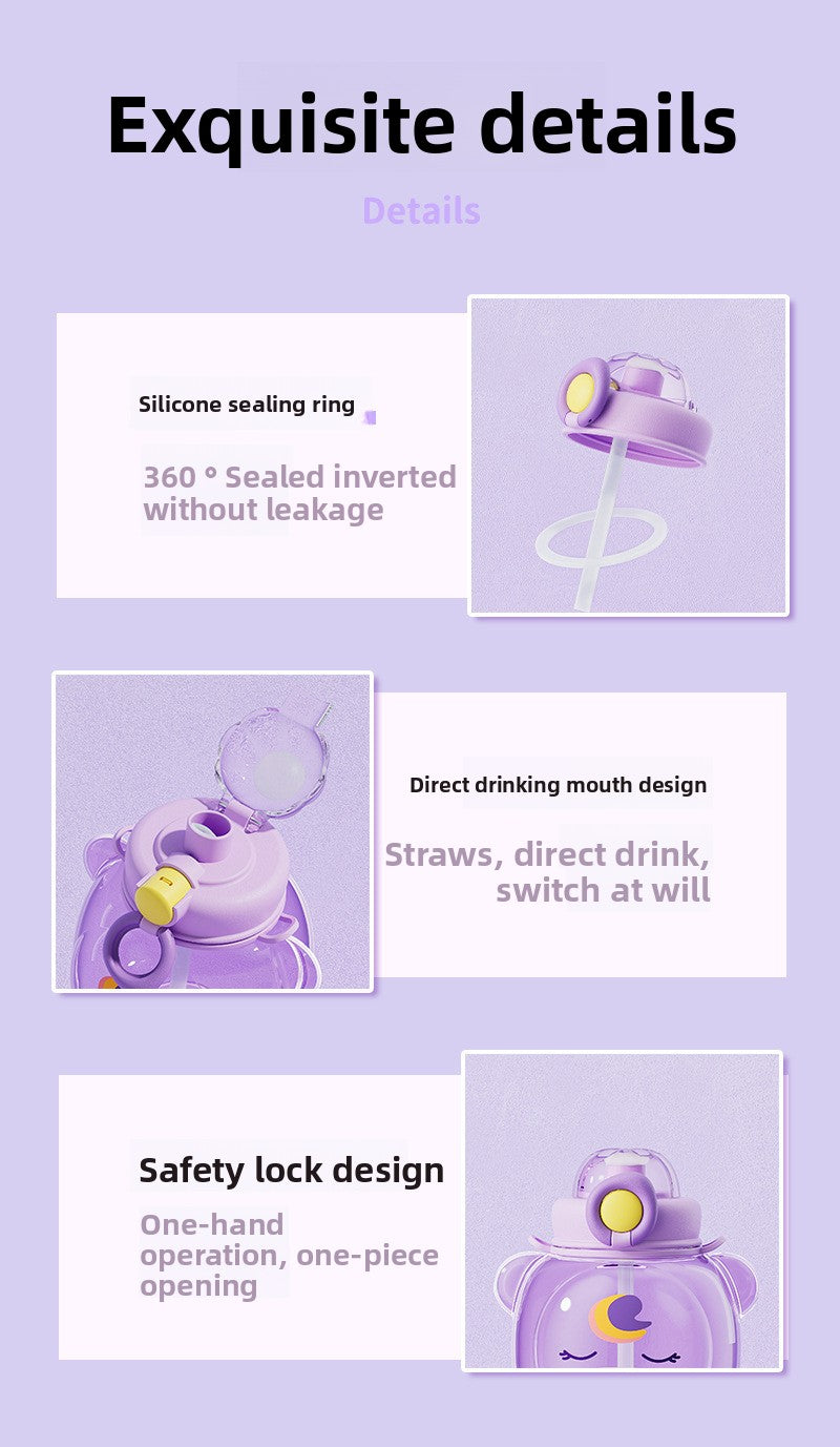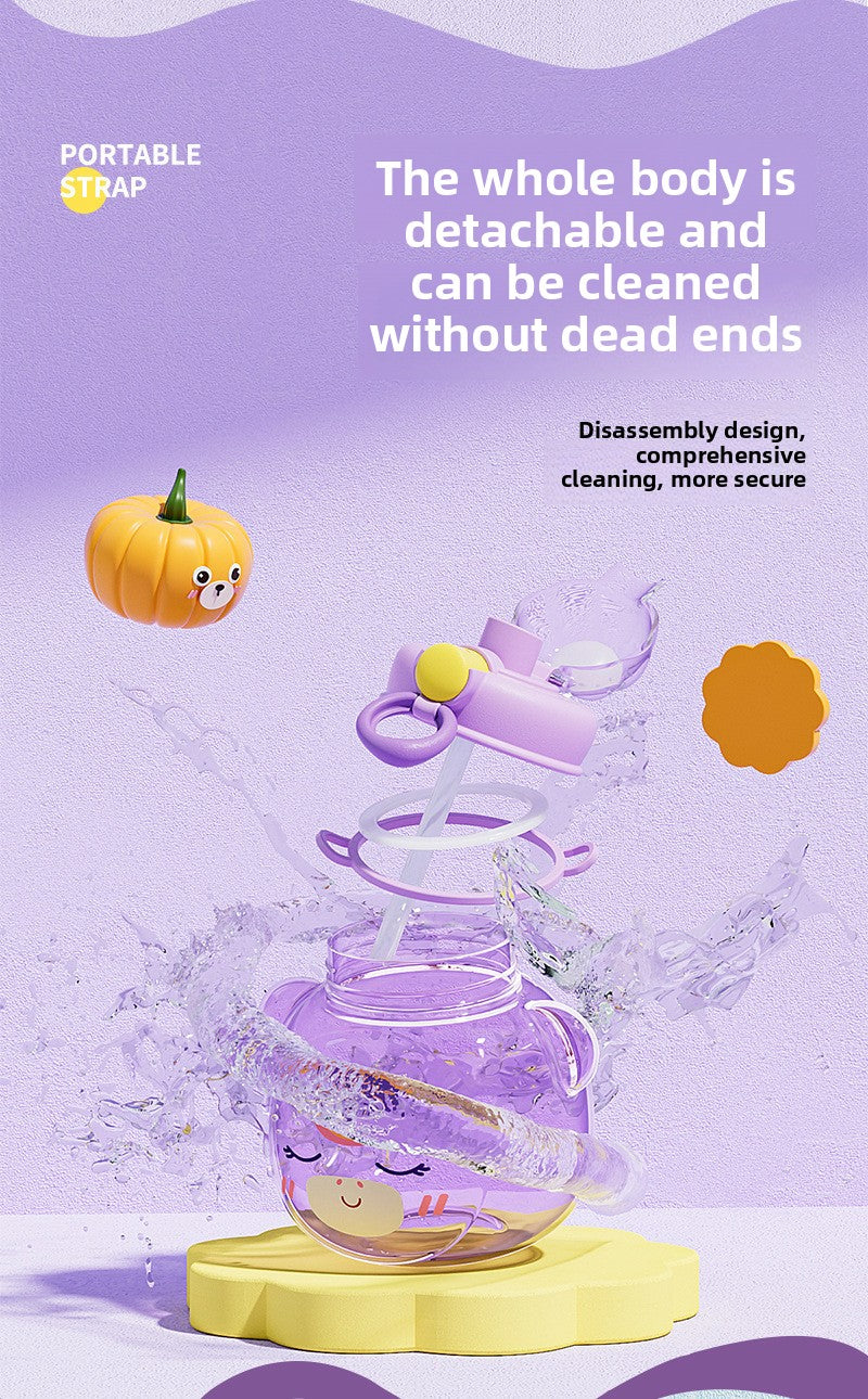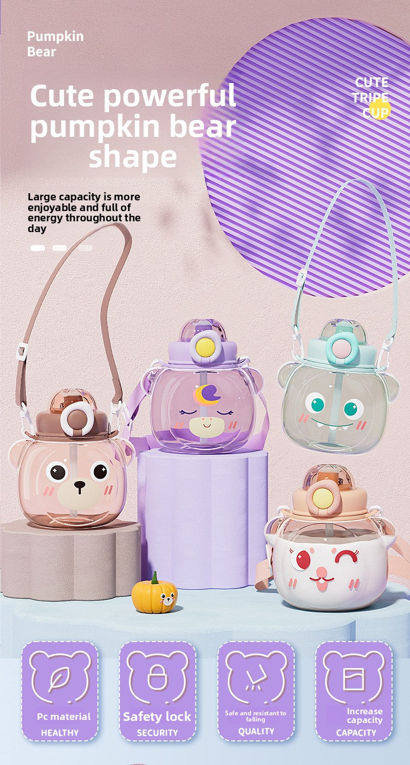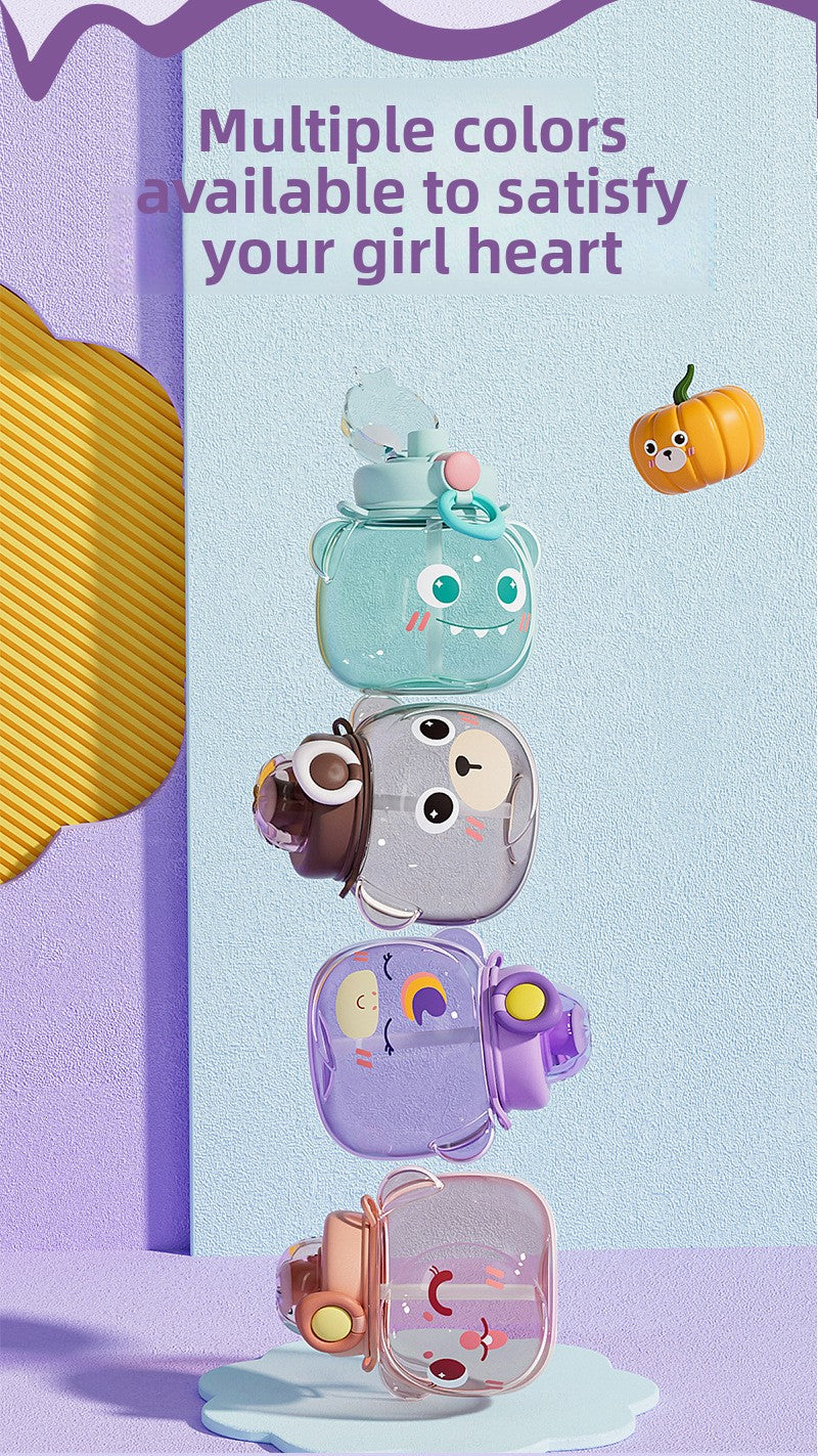 Make hydration fun and fuss-free!This adorable plastic water bottle features a Detachable shoulder strap for easy carrying and a one-touch open straw lid for chuitsk, mes-free shipping.Made with durable, BPA-free materials, it’s safe for kids and perfect for school, outings, or daily adventures.