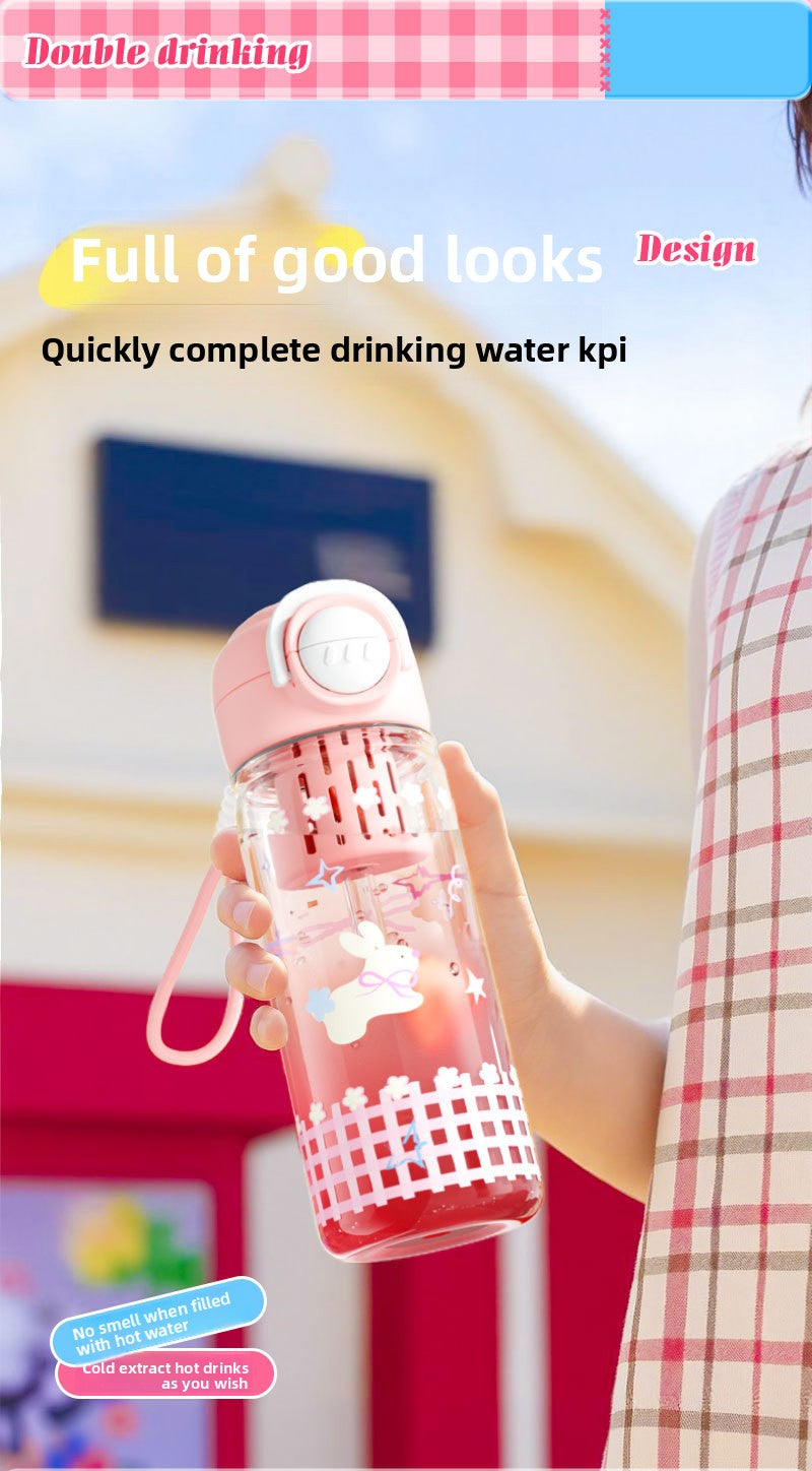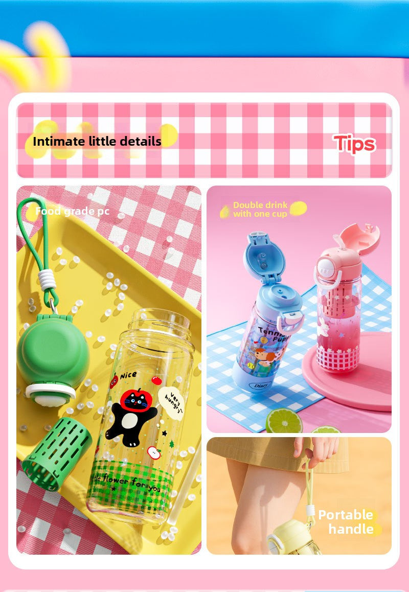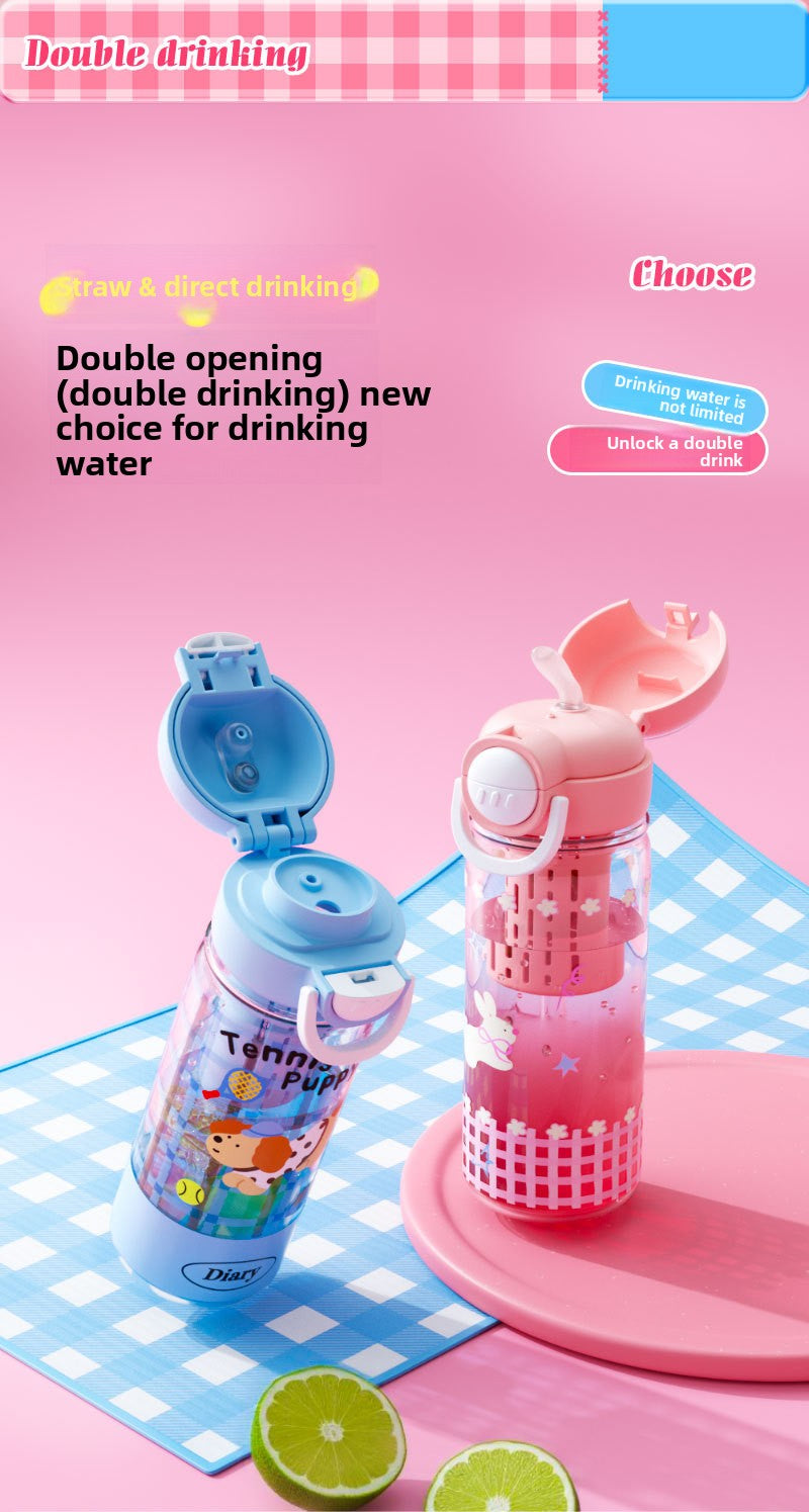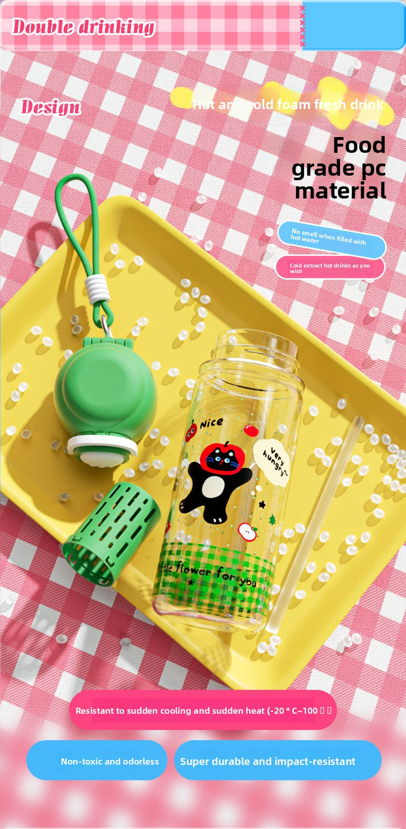 Plastic High Temperature Resistant Straw Kitten Double Drinking Cup