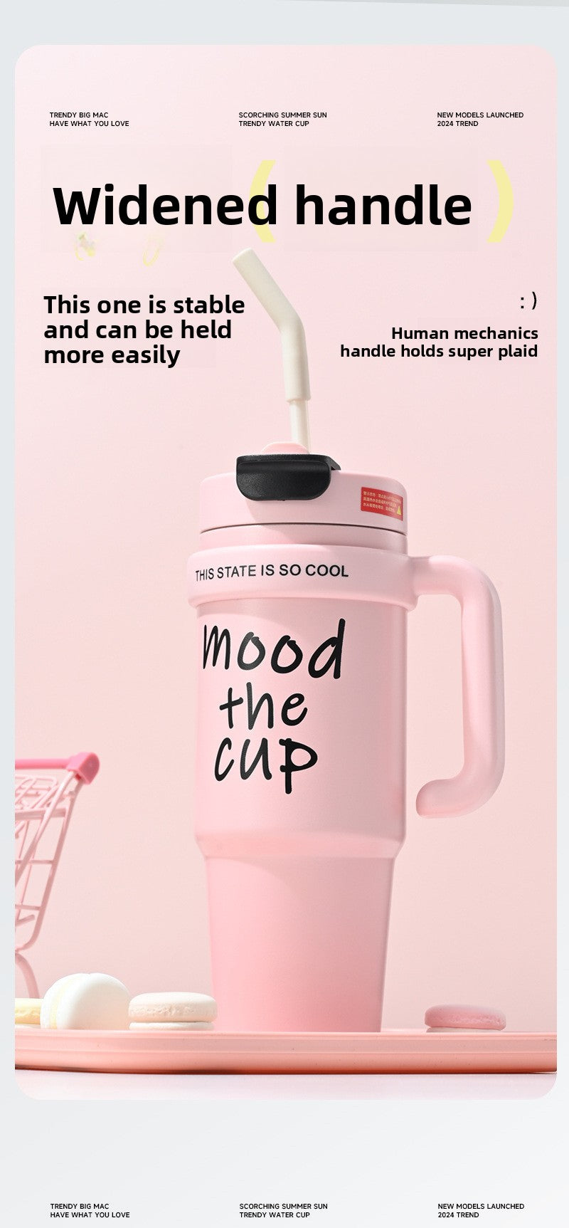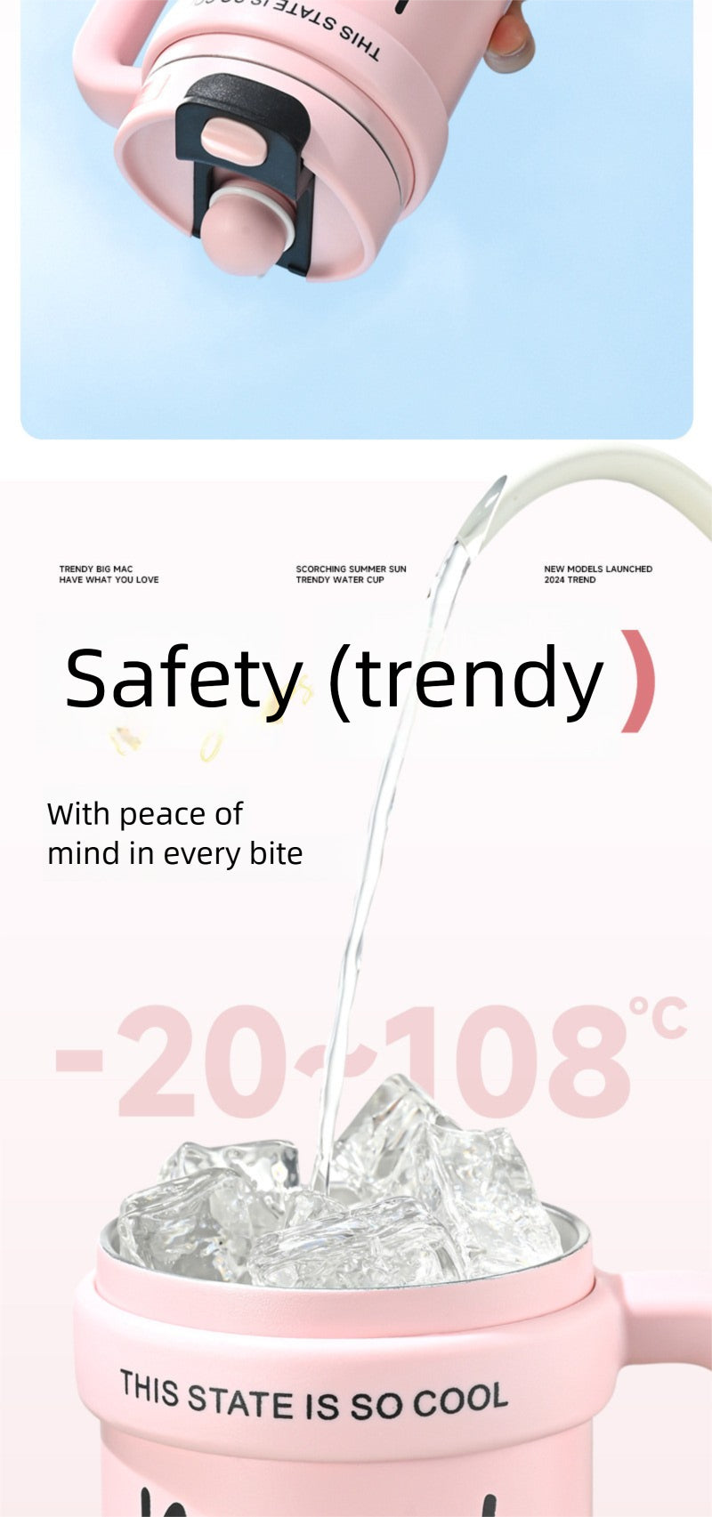 Large Capacity Stainless Steel Water Bottle with Handle & Straw