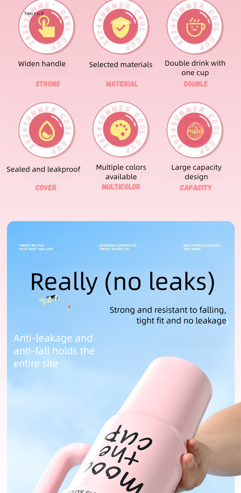 It features a leak-proof sealConvenient carry handle, and a sip-through straw lid for easy hydration.Designed to fit most car cup holders, it’s perfect for commutes and road trips.The fully detachable design makes cleaning effortless.