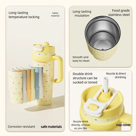 304 Stainless Steel Handle Insulated Cup Portable Car Straw Cup