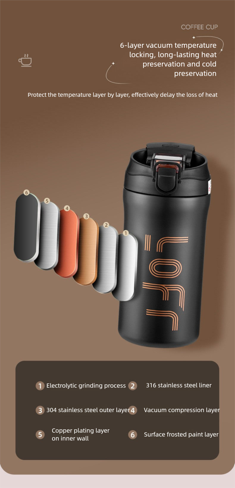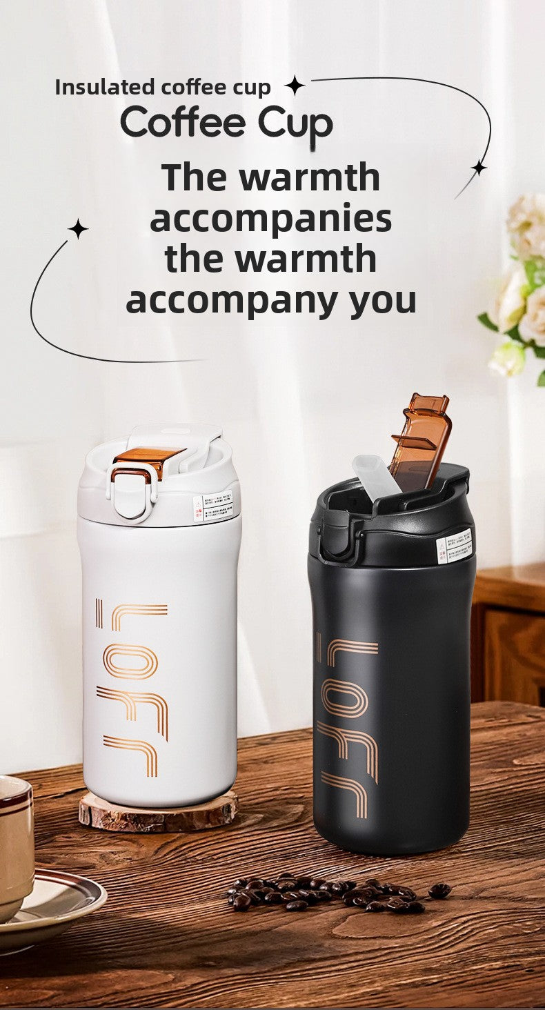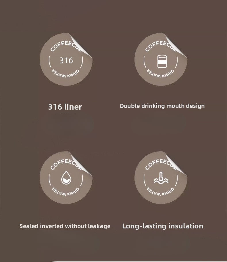 Coffee Cup Insulated Cup Dual Drinking 316 Stainless Steel Portable Cup High Aesthetic Large Capacity Water Cup Office Business Cup Coffee Cup Insulated Cup Dual Drinking 316 Stainless Steel Portable Cup High Aesthetic Large Capacity Water Cup Office Business Cup