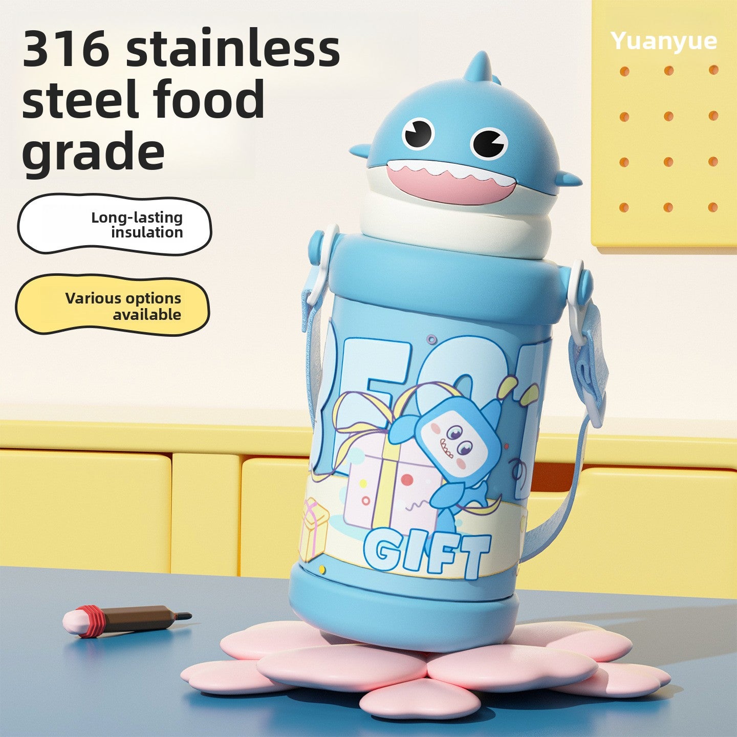 Dive into fun with our shark-shaped stainless steel water bottle for kids!Made of high-quality 316 stainless steel, it’s safe, durable, and keeps drinks cold or warm for hours.