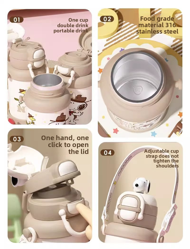 Snoopy Double Drink 316 Insulated Straw Cup