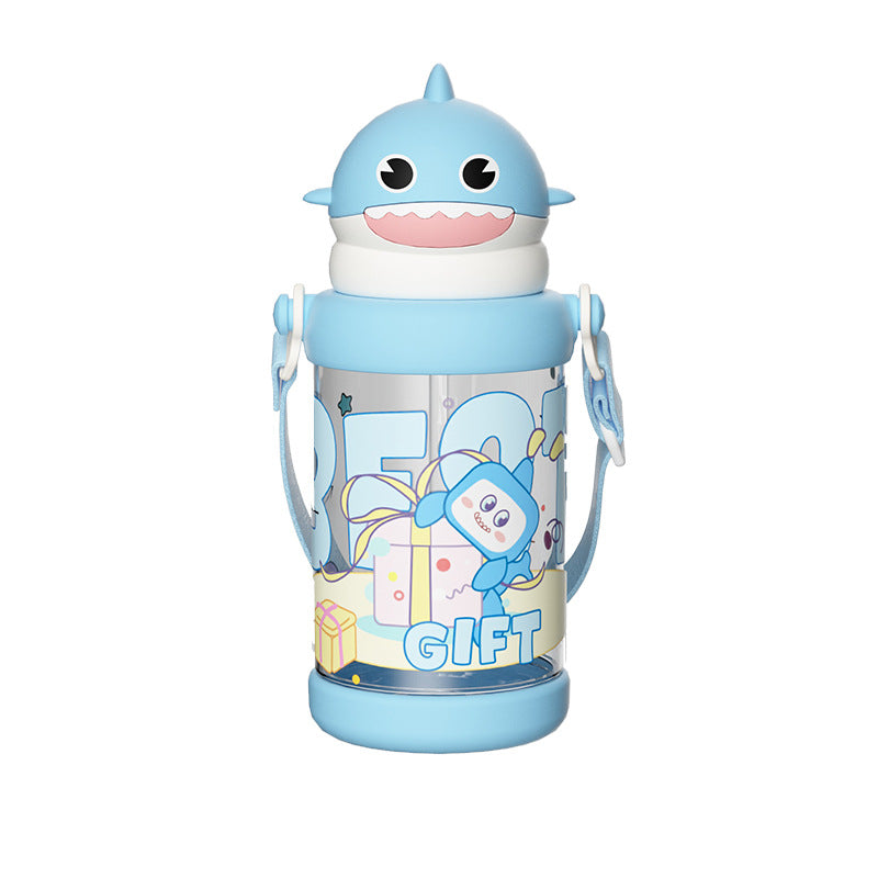 New High-Value Children's Plastic Straw Cup Kindergarten Cute Doll Water Cup Student Crossbody Sports Water Bottle