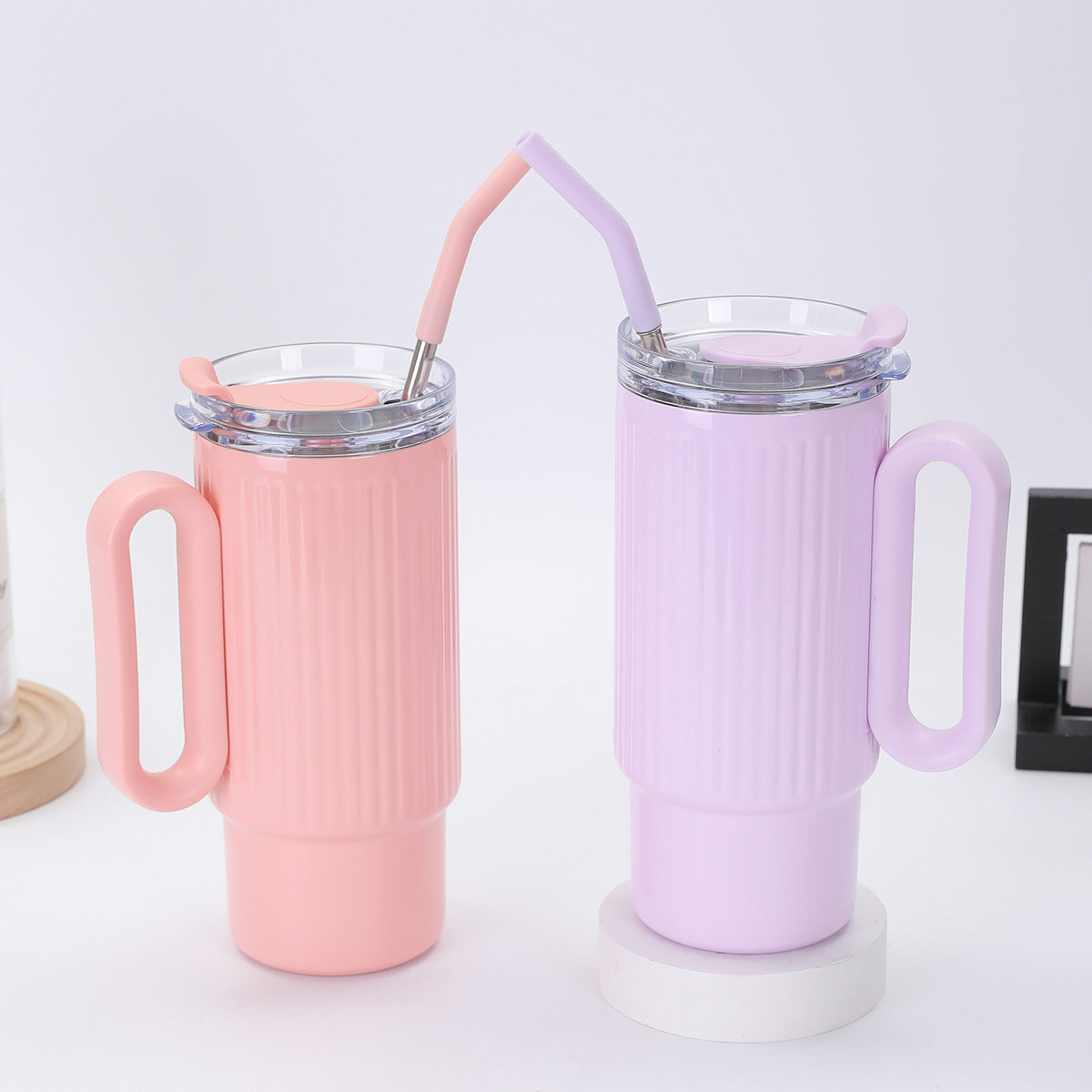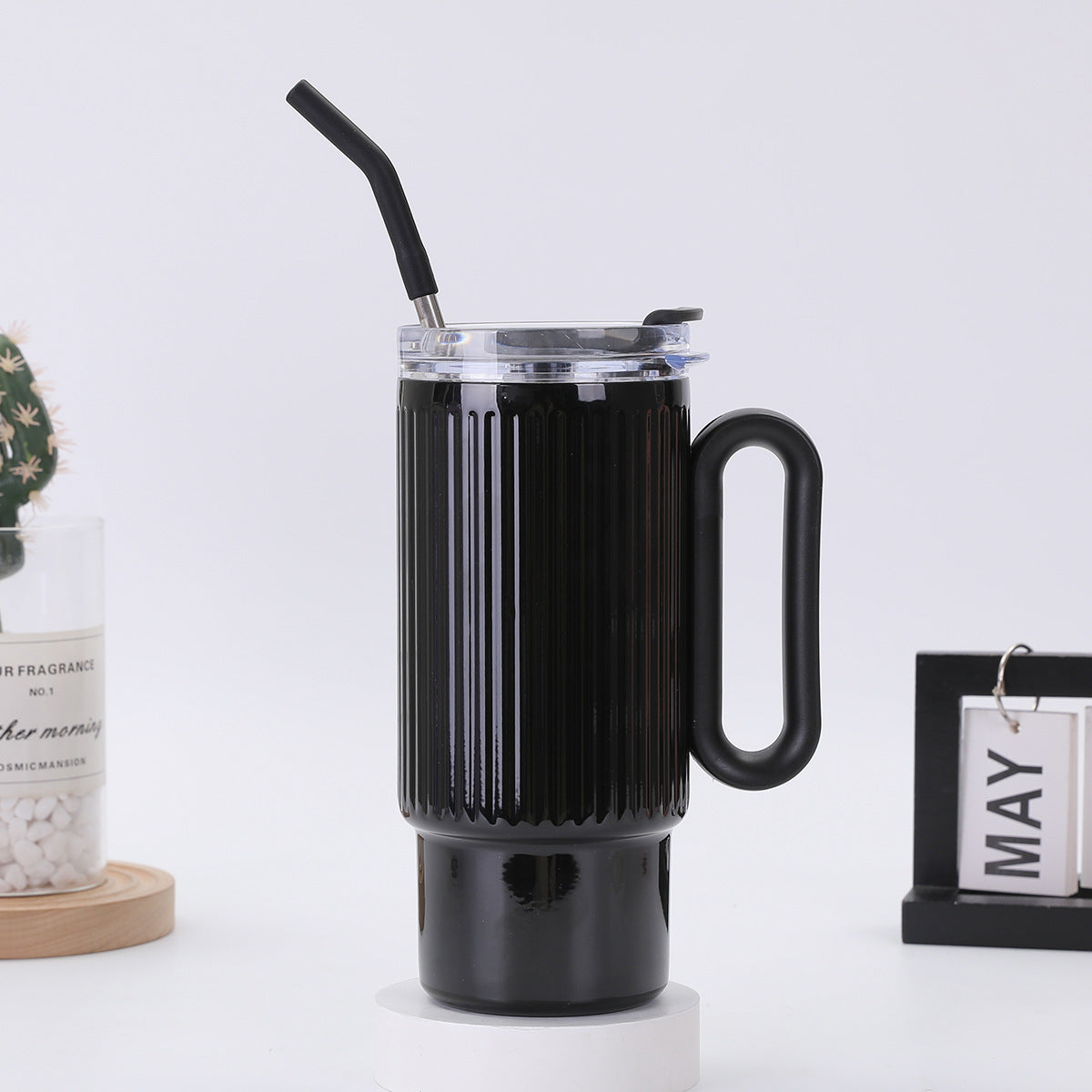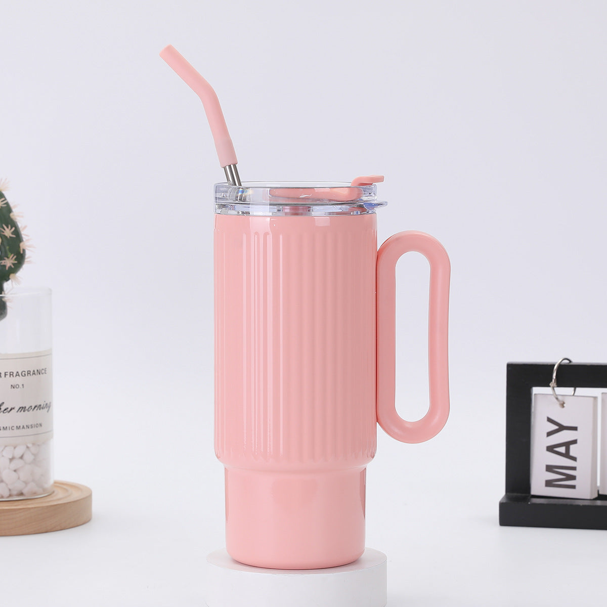Striped 40oz Large Capacity Straw Cup 304 Stainless Steel Handle Portable