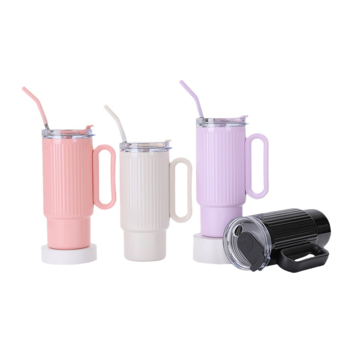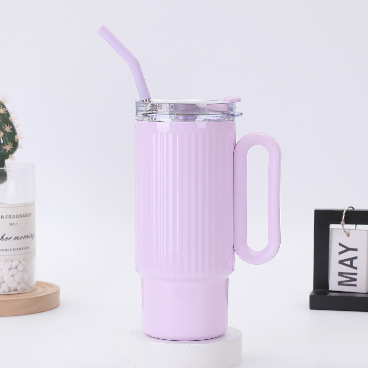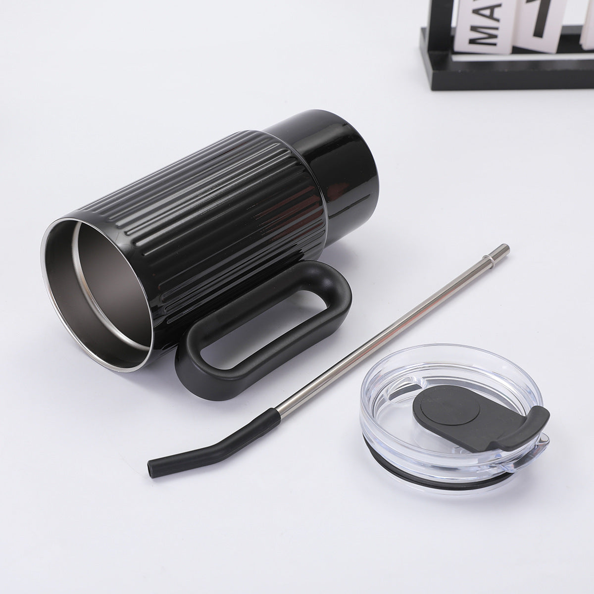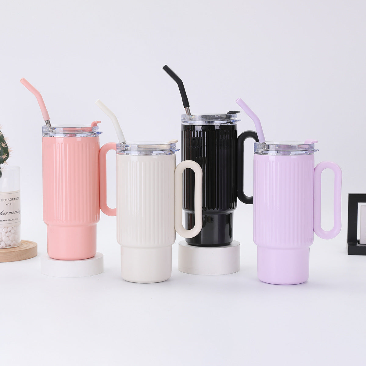Striped 40oz Large Capacity Straw Cup 304 Stainless Steel Handle Portable