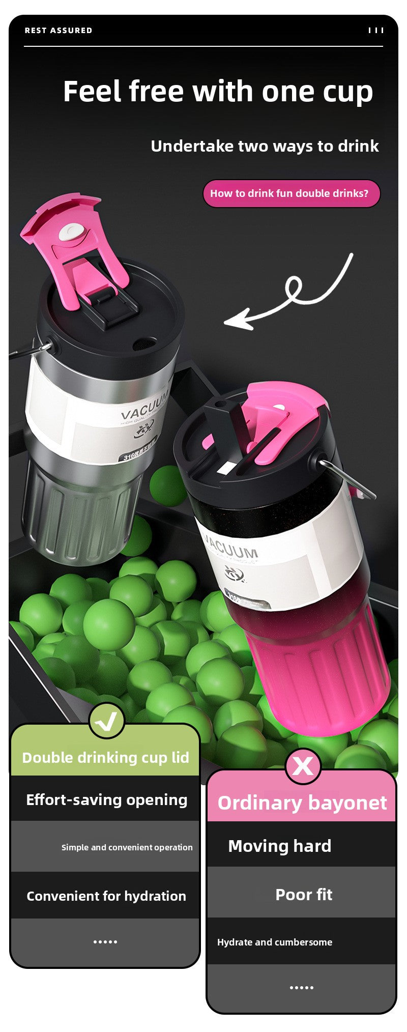 ✨ 2 Lids, 1 Bottle: Sip lid for coffee, straw lid for water.Your choice!