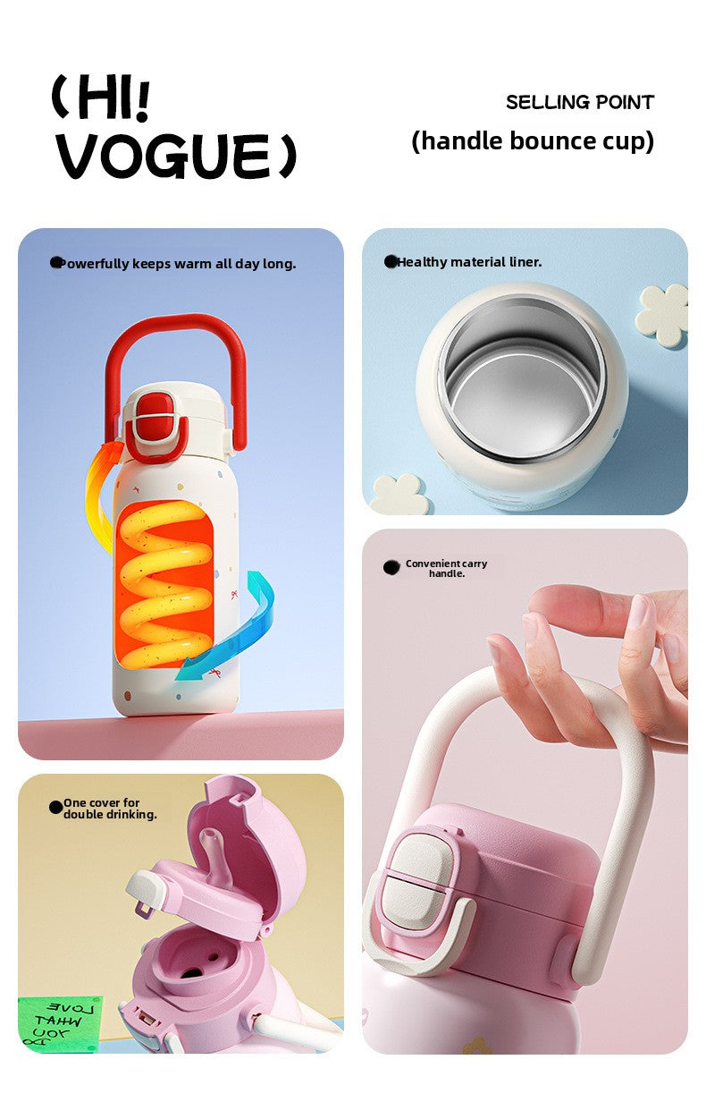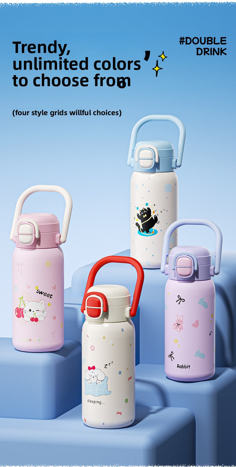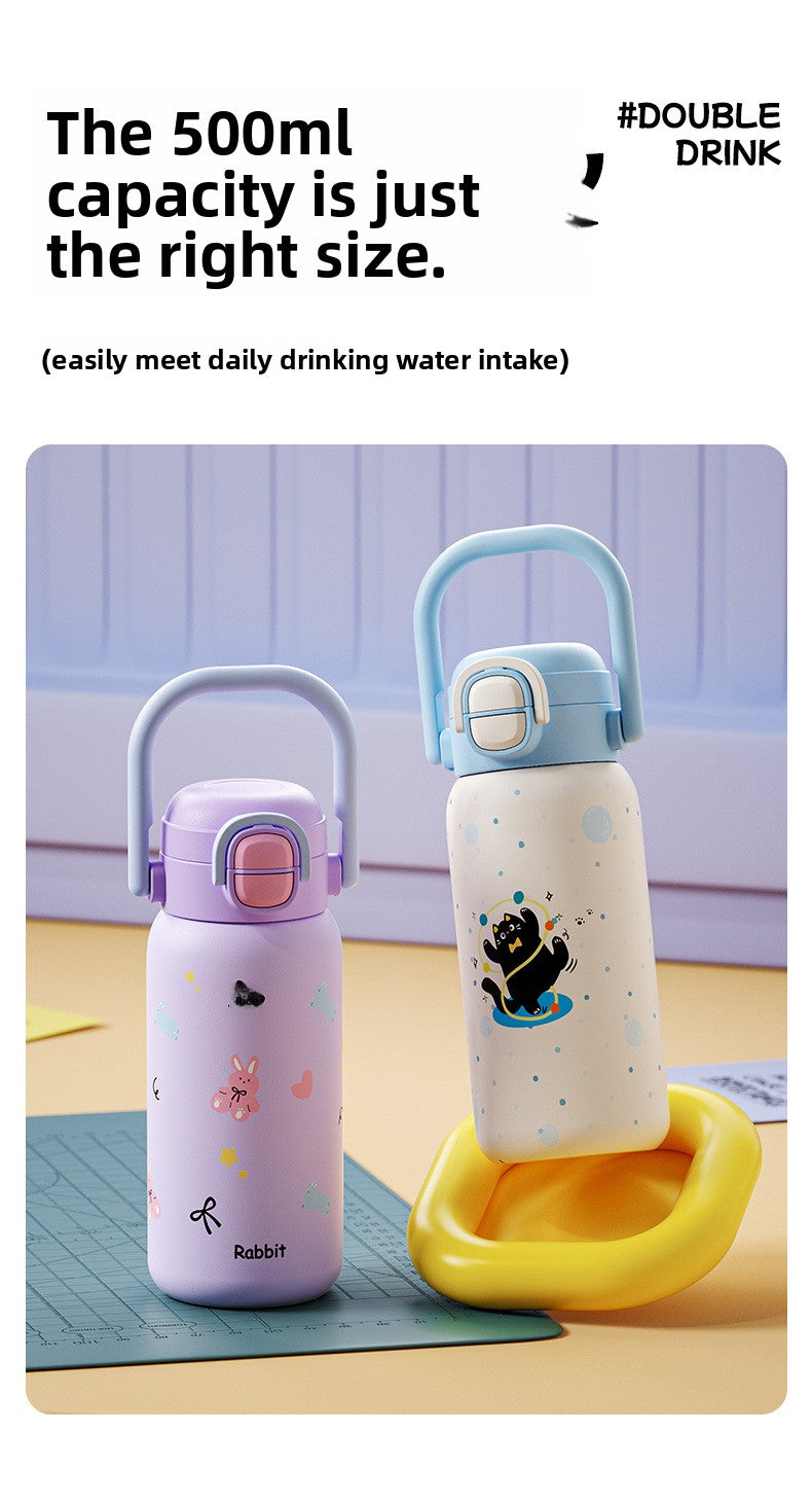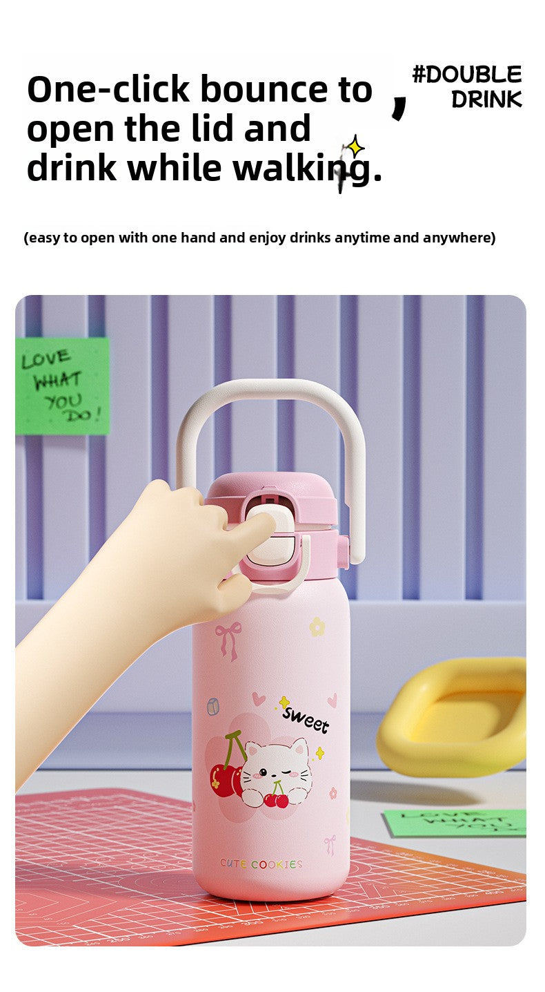 New Cartoon Double Drinking Cup High Appearance 316 Stainless Steel Insulated Cup Student with Straw Bouncing Cup Manufacturer Wholesale New 3D Cartoon Children's Insulated Water Cup Simple Straw Cup High Appearance Male and Female Student Portable Water Cup 2025 Bouncing Straw 316 Stainless Steel Water Cup Simple Niche Large Capacity New Ins Style Female High Appearance Insulated Cup