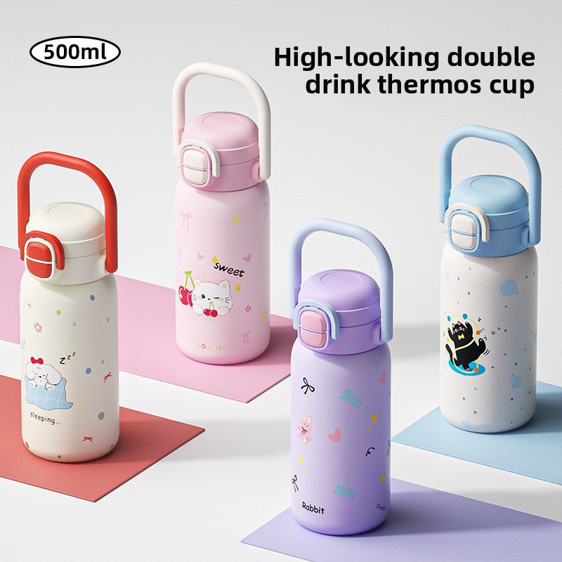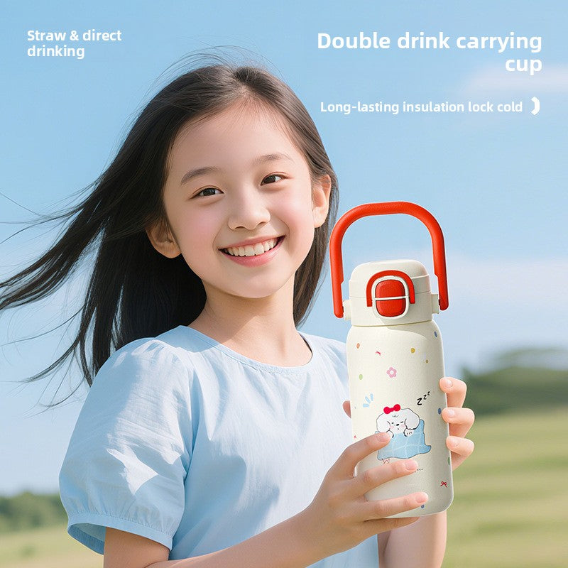 New Cartoon Double Drinking Cup High Appearance 316 Stainless Steel Insulated Cup Student with Straw Bouncing Cup Manufacturer Wholesale New 3D Cartoon Children's Insulated Water Cup Simple Straw Cup High Appearance Male and Female Student Portable Water Cup 2025 Bouncing Straw 316 Stainless Steel Water Cup Simple Niche Large Capacity New Ins Style Female High Appearance Insulated Cup